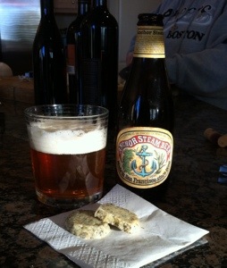 Maytag blue cheese crisps and Anchor Steam… A perfect pairing! Salty big cheeseyness and sweet, malty, dry finishing amber Anchor Steam.